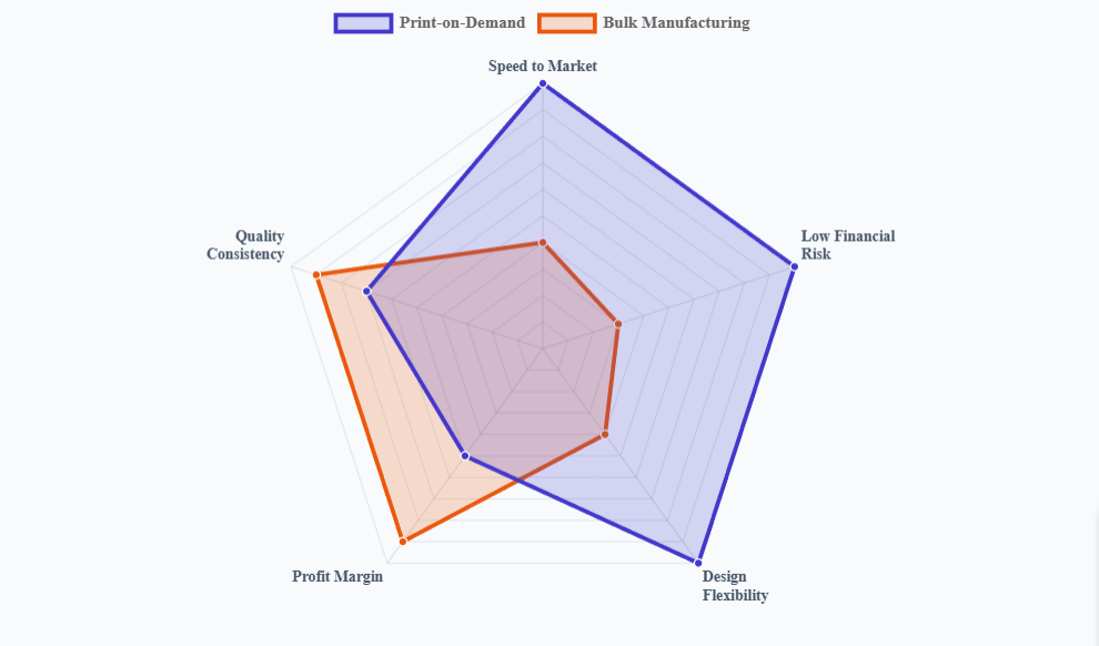 - Cash Flow Efficiency: In Print-on-Demand, the brand receives payment from the customer before paying the manufacturer for the product. This positive cash flow cycle allows for rapid scaling without the need for massive working capital loans.